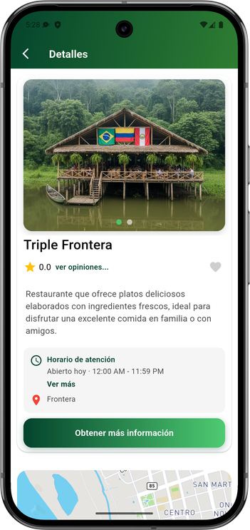 Una aplicación móvil diseñada como una guía integral para turistas y locales del Amazonas. Permite descubrir sitios turísticos, conocer comercios locales, participar en eventos regionales y apoyar el emprendimiento de la zona mediante una experiencia digital intuitiva.